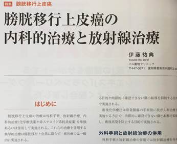 今回はJ-VETと言う獣医師向け雑誌の膀胱癌の特集で、抗がん剤治療と放射線治療の部分を執筆しました。